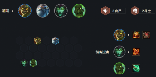 前期出门抢大剑,这版本游侠大剑比攻速需求更高。前期打连胜,尽量早点升人口,二阶段用斗士加丧尸或者神盾过渡最佳,肉装给猪妹,输出装给丧尸或者神盾怪。