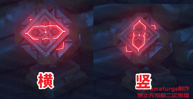 *注意2:图上标注的"横”、"竖”仅为初始状态迷宫破解的方法。如果你的迷言不是初始状(也就是说你在迷言的后半段扳动了其他机关),图上标注的"横"、