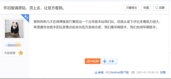 玩家主动要求官方出怀旧服!这操作属实有些让人意想不到。