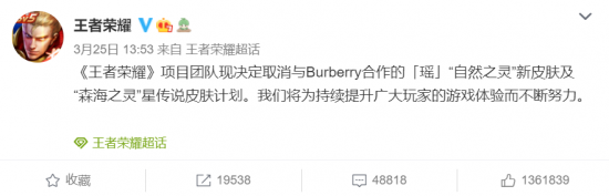 除了国产服装纺织类品牌,也有诸多游戏厂商也毅然选择了与这些涉事品牌方解约,国产游戏人的风骨在国家利益面前不遑多让。王者荣耀前不久就才官宣了与巴宝莉的皮肤联动,游戏厂商也对本次的联动报以了最大的诚意,而新疆棉花事件一出,王者荣耀迅速宣布与巴宝莉取消合作,等于整个规划作废损失不小。而LOL周边商城也下架了耐克相关商品,引起了玩家的一阵好评,毕竟耐克为战队设计的队服是出了名的阴间。