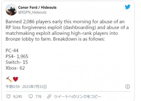 ·被封号的玩家们的作弊行为被称为“Dashboarding”,操作方法很简单很暴力,就是为了赚取额外的排名点数(RP),因为游戏中高排名玩家参加多人匹配时需要缴纳的RP报名费也更多,不过如果比赛成绩差的话会导致玩家亏损,于是就出现了解决办法。