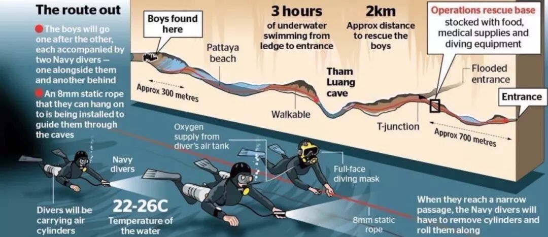 要知道就在上周五,一位训练有素的前泰国海军海豹突击队队员在为男孩们输送氧气补给后的回撤路上,因为水下设备故障缺氧而不幸罹难。