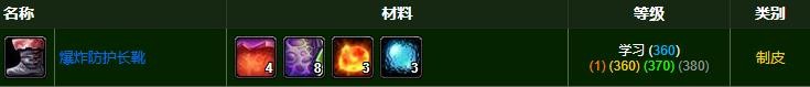 游戏《魔兽世界》中,这个物品等级是112级。那么爆炸防护长靴需要什么材料?还是有很多玩家并不了解,各位亲爱小伙伴,让我们一起来看爆炸防护长靴需要材料介绍吧。