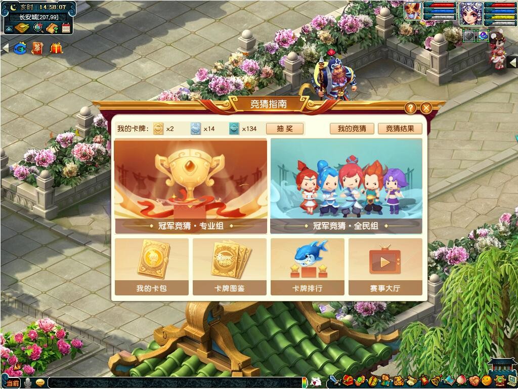 活动期间玩家(≥50级)登录游戏可以获得一本“全民PK赛竞猜指南”,打开手册可参与:卡牌购买、冠军战队竞猜、卡牌抽奖玩法。